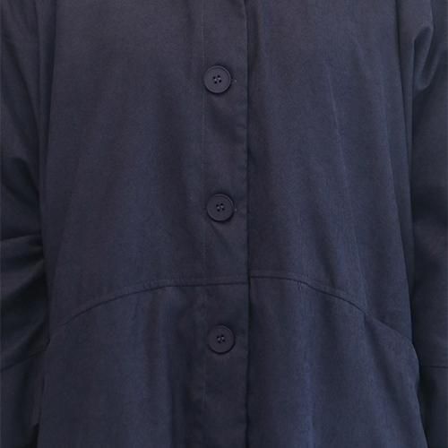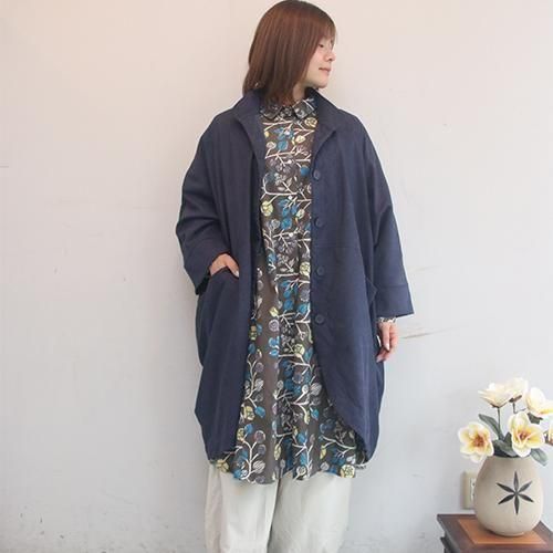身体のラインを拾わないコクーンシルエットが、体型カバーと女性らしさを両立します。