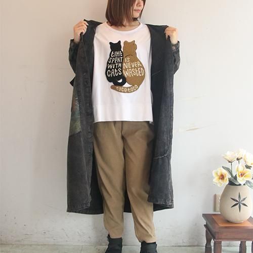 体型カバーできる、大人の異素材デニムワイドパンツ