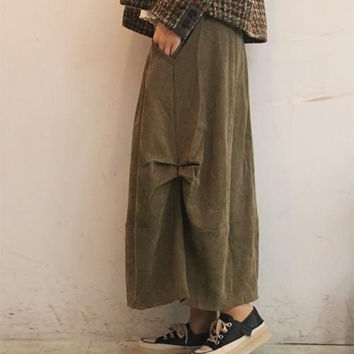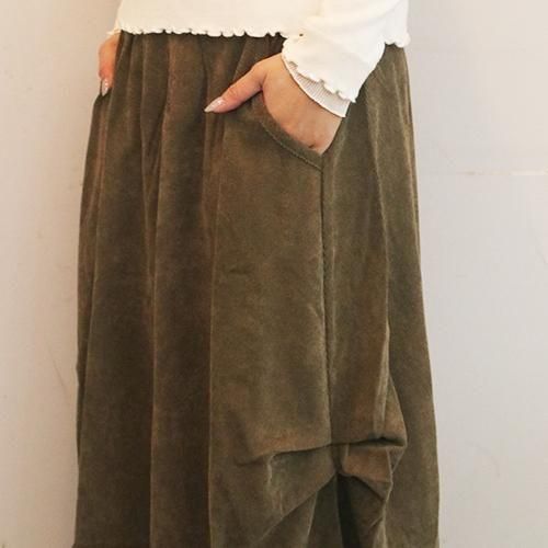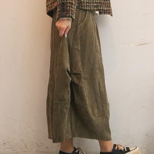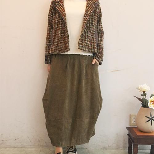 大人の女性らしいやさしさと動きのあるフォルムが魅力のコーデュロイスカート。