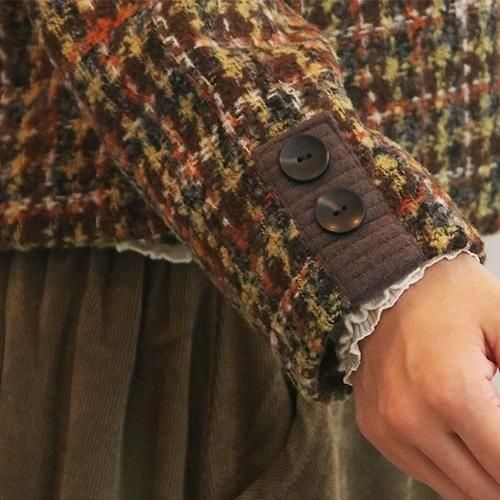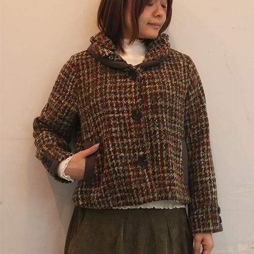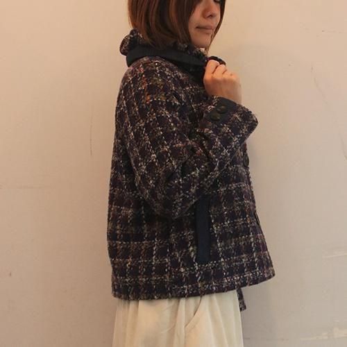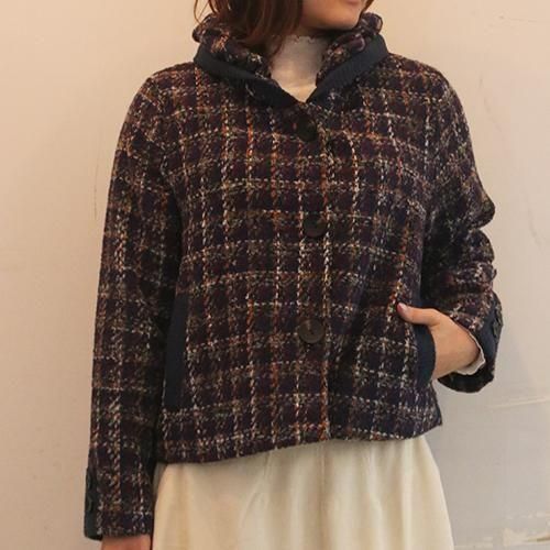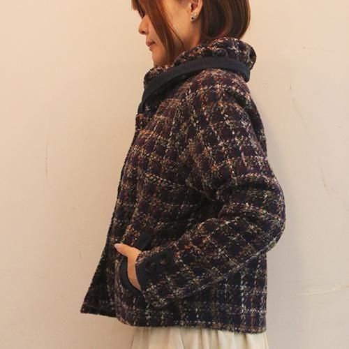 ツイード調のふっくらとした素材感が温かみを添えるショートコート。