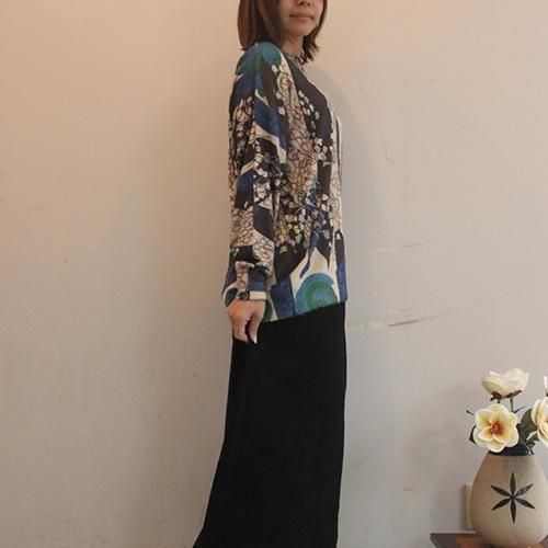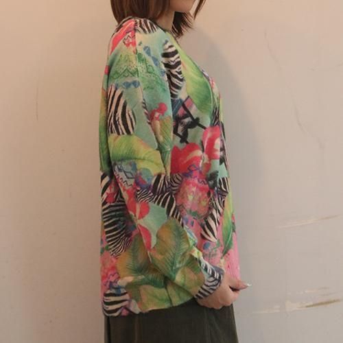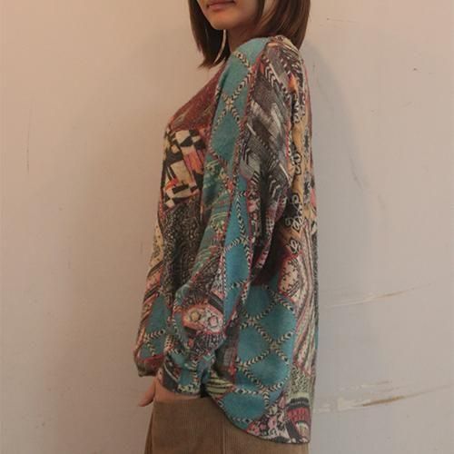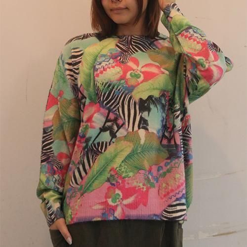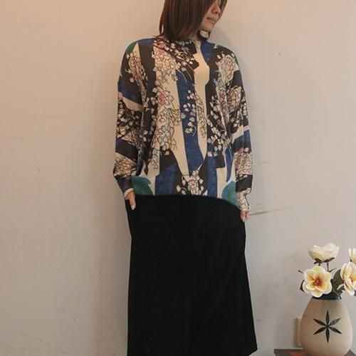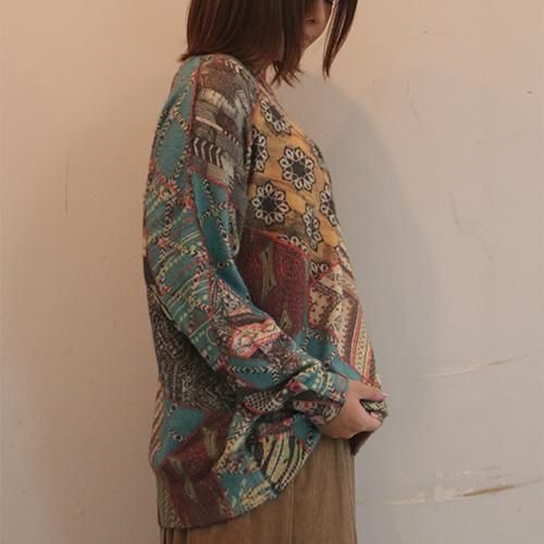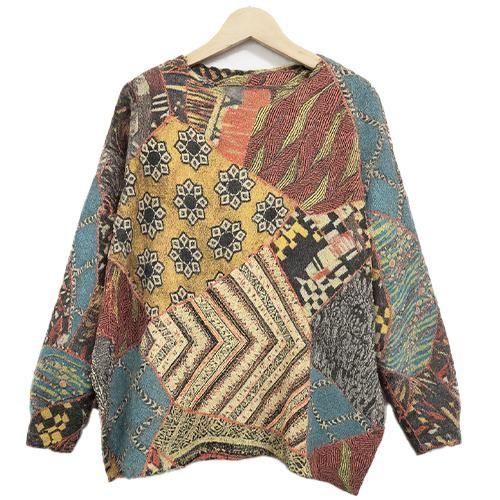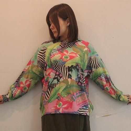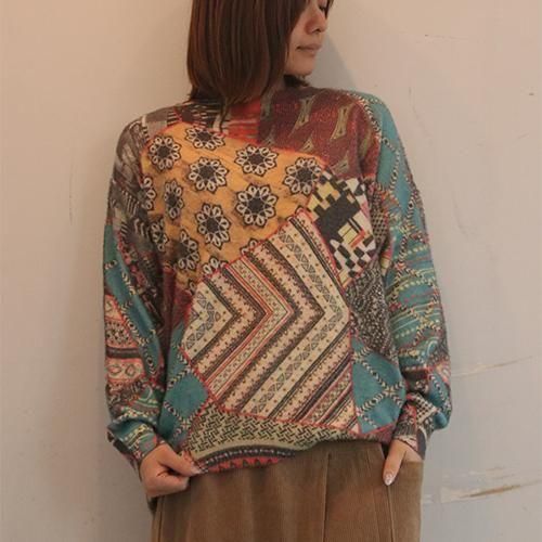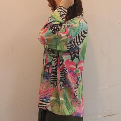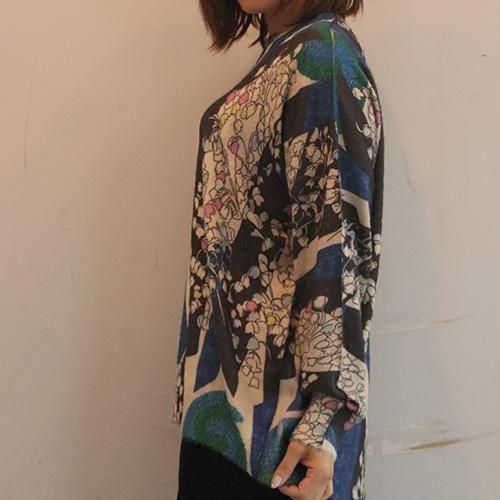 遊び心のある色柄ながらも、落ち着いたトーンと質感で上品に仕上げた、大人のための個性派プルオーバーです。