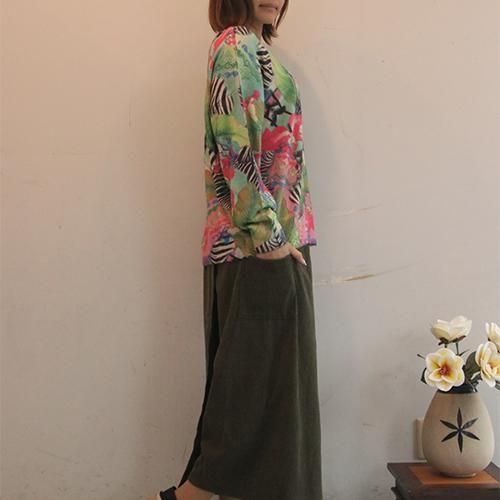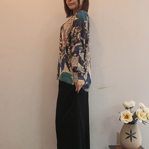 ・アートタッチのプリント柄が存在感を放ち、コーデの主役に。