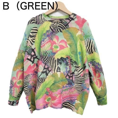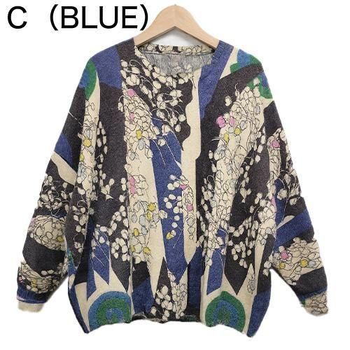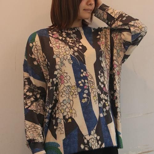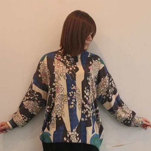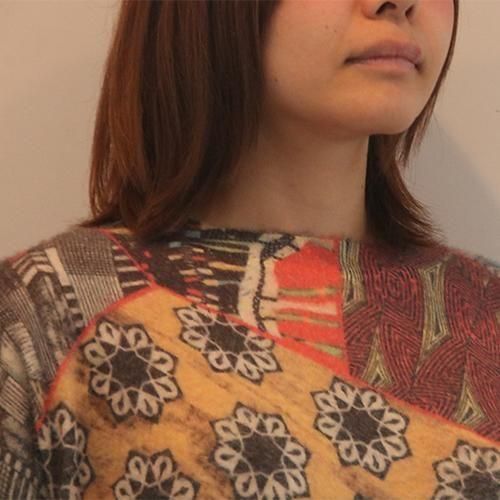 毛足の短いシャギー素材がやわらかく、軽やかな着心地のアート柄ニットシリーズ。
