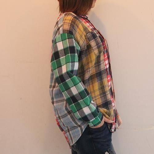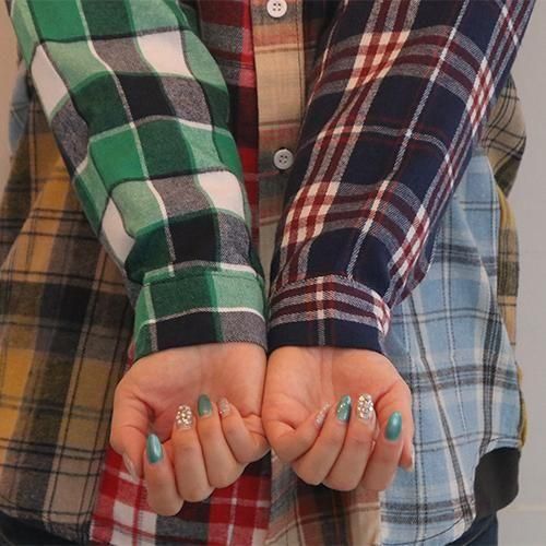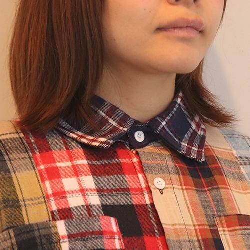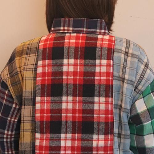 ・一枚ごとに異なるチェックの配置が、個性的なアクセントに。