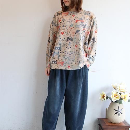 【猫柄ゆったりニットトップス|大人可愛い遊び心コーデ】