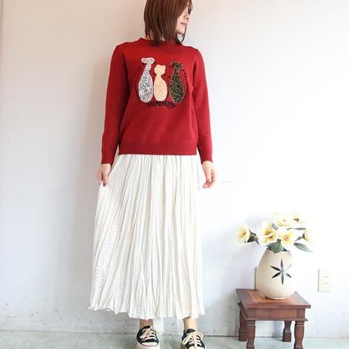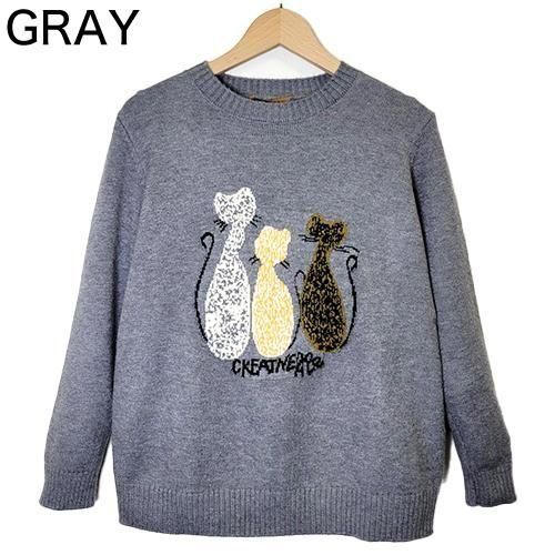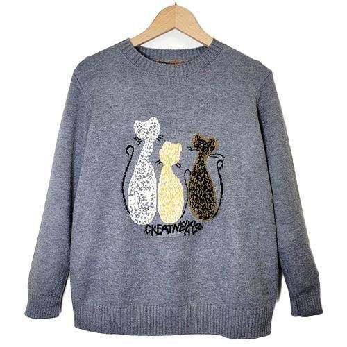 三匹の猫が寄り添う遊び心あふれるデザインニット。
