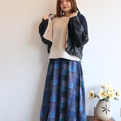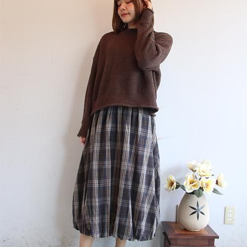 秋冬ムード高まる「チェック×ニットレース」異素材切替スカート