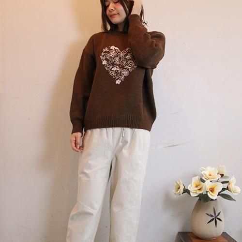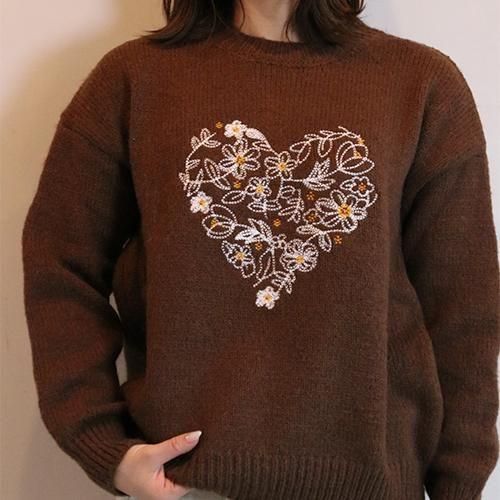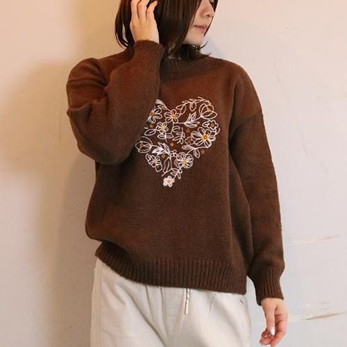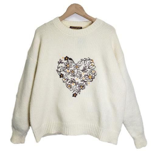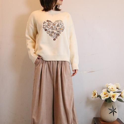 刺繍ハートニット|サイズで迷わないフリーサイズニット