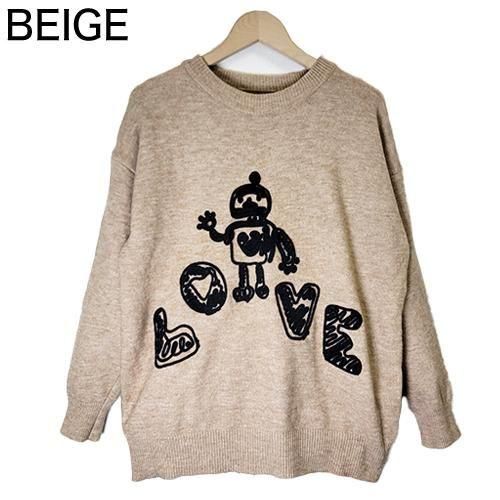 LOVE刺繍ニット|フリーサイズで迷わない大人カジュアルニット(2色展開)