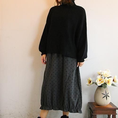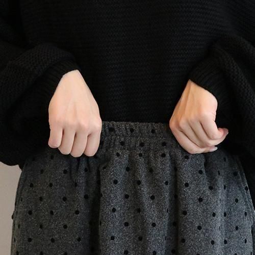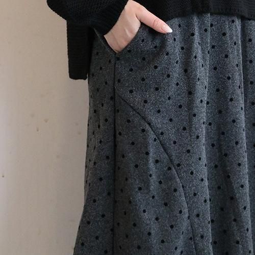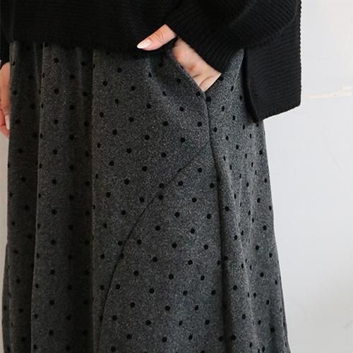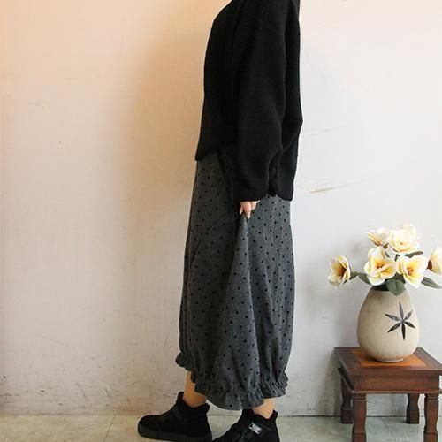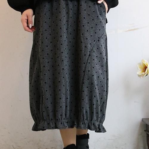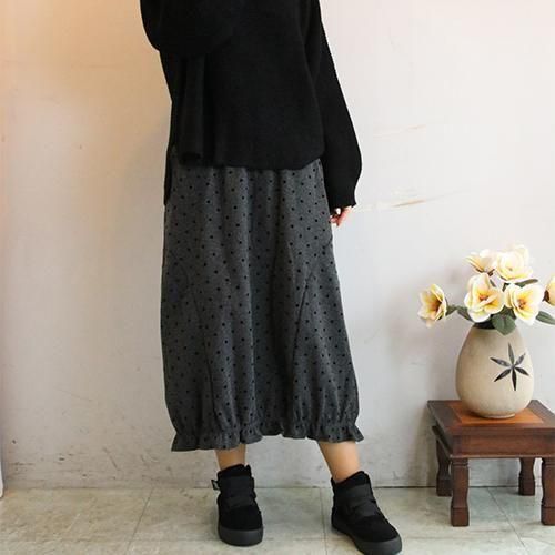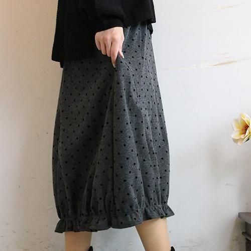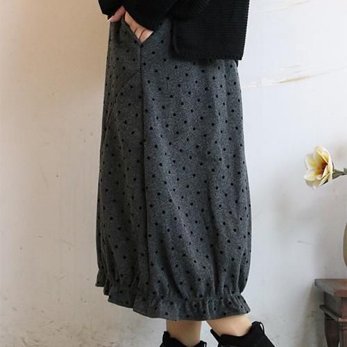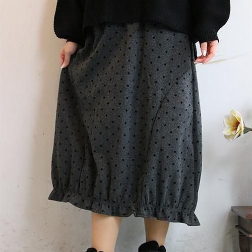 小さなドット柄と丸みのあるシルエットで、体型をやさしく包み込む大人のバルーンスカート。