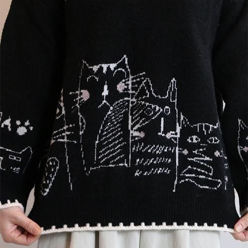 ネコモチーフニット|サイズで迷わないフリーサイズニット